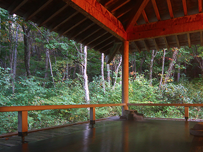 温泉の周辺はブナに囲まれ、四季折々の自然の姿をお楽しみいただけます。 |